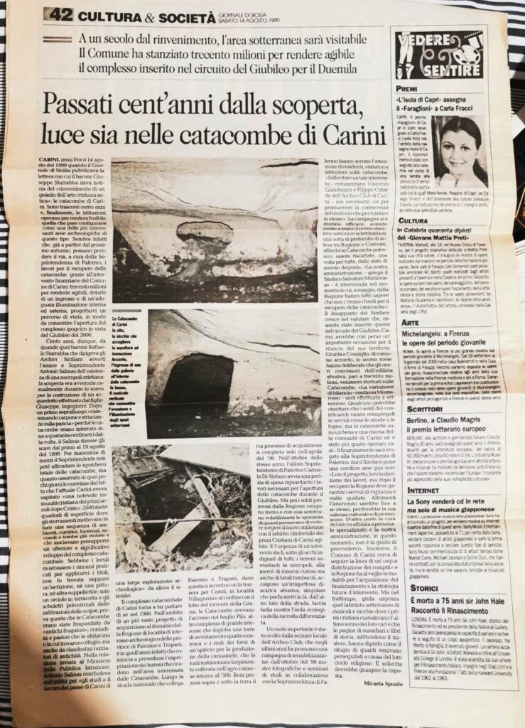 E proprio per dovere di memoria desideriamo portare a conoscenza dei più giovani e non solo come, nel recente passato, l’Associazione Archeoclub di Carini si sia adoperata incessantemente per la conoscenza, la salvaguardia e la promozione delle nostre ricchezze storiche e monumentali costituendo nei fatti le basi di quanto adesso si realizza di rilievo internazionale.
